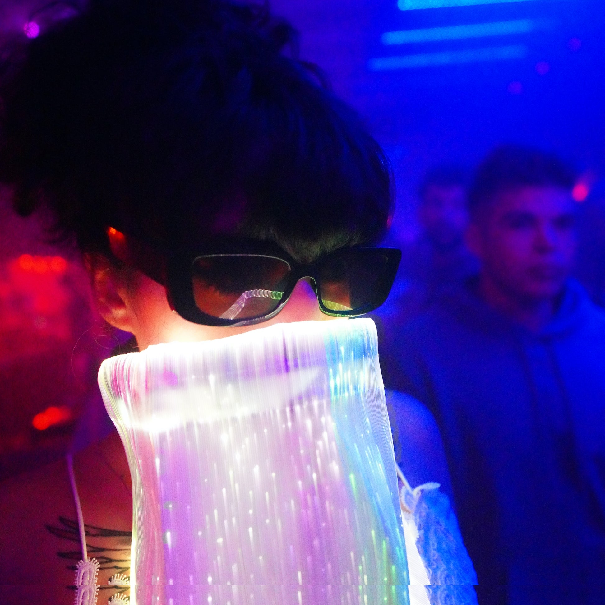 LED Fiber Optic Light Bandana - 11 color modes. Lighted scarf for party rave concert festival burning man. Light up 7 colors plus flash and strobe mode. Stand out in the crowd with cosmic bandana.